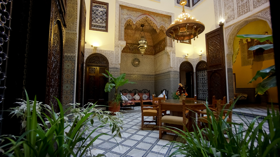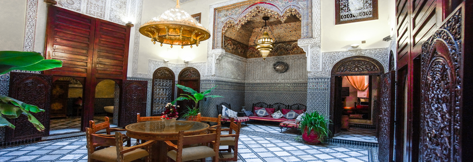 Ancienne demeure de marchands andalous, restaurée dans le respect des traditions fassies. Entre patio et terrasse panoramique, le Riad Fes Palacete vous invite à vivre l'art de la médina.